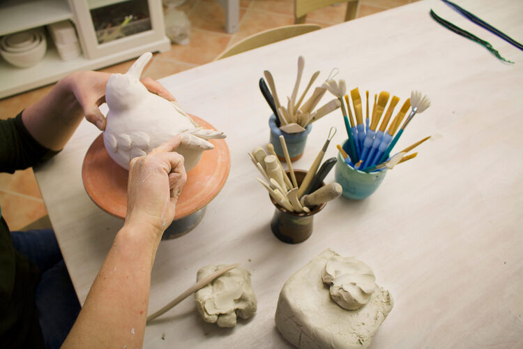 Handmodellierte, skurril anmutende Statuen aus reinem weißen Ton, skulpturell wirkende Vasen, Schalen, Dosen oder die von Gästen und Einheimischen geliebten Liburni-Möwen gehören zu der Verkaufsausstellung in der Töpferei „Laetitia“ – im Haus des Gastes. Alles sind Unikate unserer Töpferin Claudia Motschmann. Unter fachlicher Anleitung ist das Erlernen von verschiedenen, einfachen Arbeitstechniken und freiem Modellieren in einem Töpferkurs möglich. Hier ist schon so manch ganz persönliche Urlaubserinnerung entstanden.